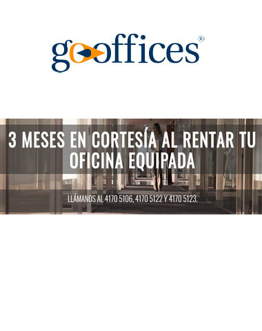 Las oficinas en renta de Go-Offices están totalmente equipadas y listas para usarse. Cuentan con servicios integrales y tecnología de punta para que las empresas obtengan la mejor imagen corporativa y herramientas de trabajo dentro de un Centro de Negocios. Nuestras oficinas amuebladas pueden configurarse a las ne.